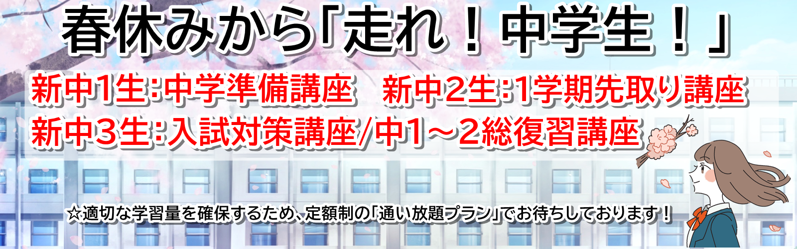 | 新小学4・5年生 | 新小学6年生 | 新中学1年生 | 新中学2年生 | 新中学3年生 | (NEW!) 高校生 |